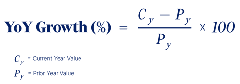Definition: Year-over-year (YoY) is a term used in finance and economics to describe the comparison of a metric for one period to the same period the previous year. The YoY comparison is a useful measure as it removes seasonality, capturing the annual change and allowing for a more apples-to-apples assessment of growth or contraction trends. By evaluating the YoY change, analysts, investors, and decision-makers can understand the trajectory of economic or business metrics and whether they are improving, stagnant, or deteriorating.