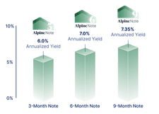 Alpine Notes offer flexible term options of 3, 6, and 9 months, and bear contractual fixed APYs of 6.0%, 7.0%, and 7.35%, respectively.